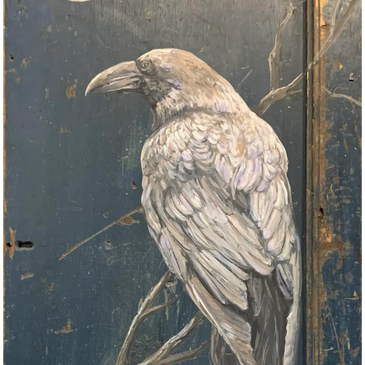 I use mainly acrylics and work primarily on vintage wood panels and one of a kind flea market finds... the joy is in the hunt for that special piece